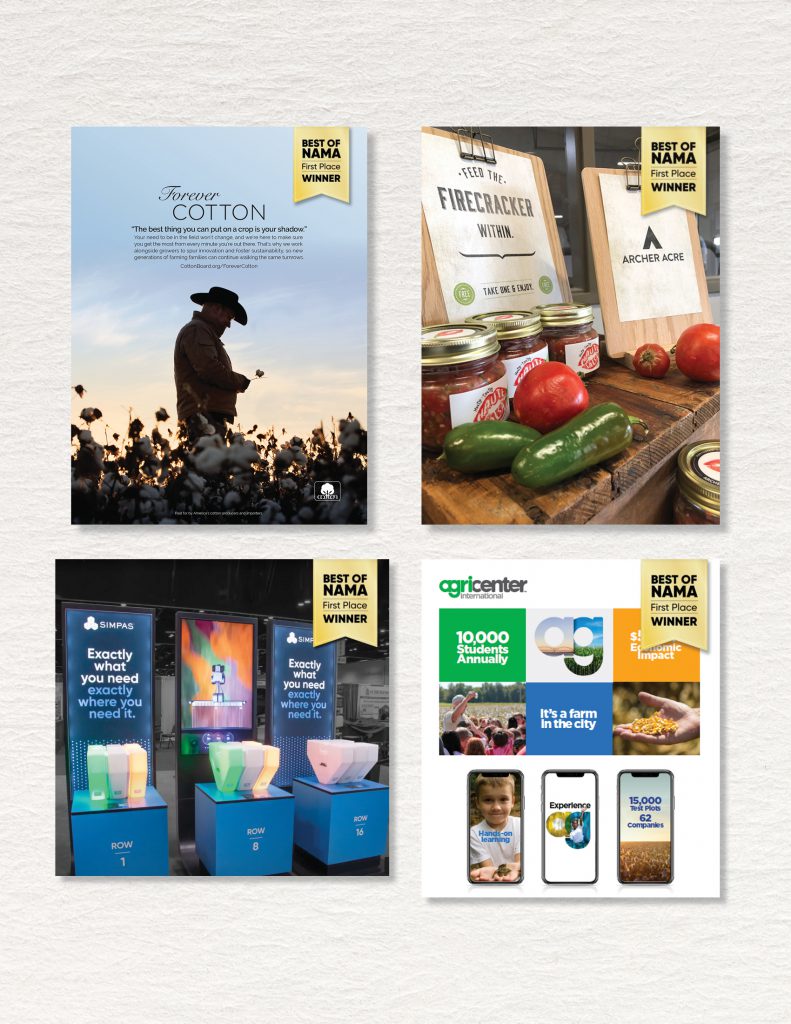 We’re proud to announce that our creative work brought home four first-place awards and one merit award. While most agencies may win multiple awards for a single Ag client, we were the only agency to win First Place awards for four separate clients: The Cotton Board, AMVAC, Agricenter International and DIGITAL L MEDIA LTDAcre.