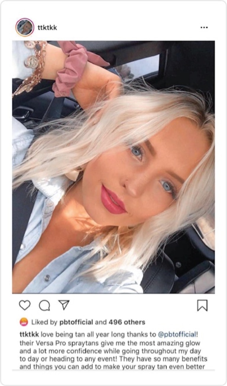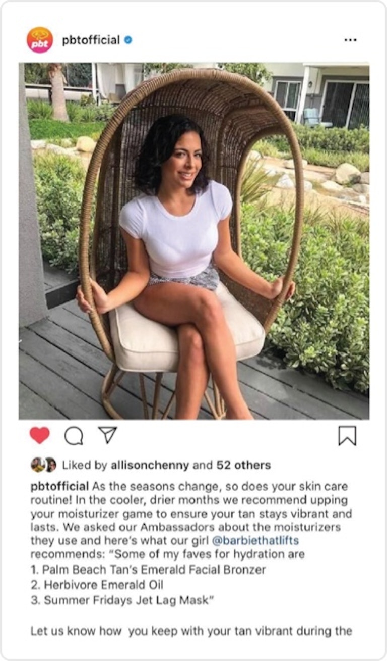 For example, in support of our marketing goal to drive brand consideration, we know that PBT’s prospective customers use Instagram as a primary channel for exploring their world. So we develop branded content and mine user-generated content that positions tanning as right at home in their beauty world.